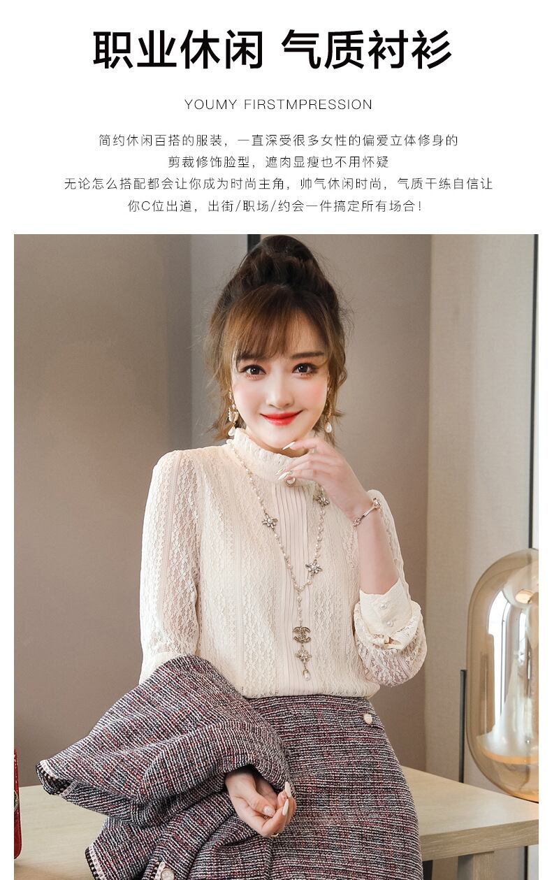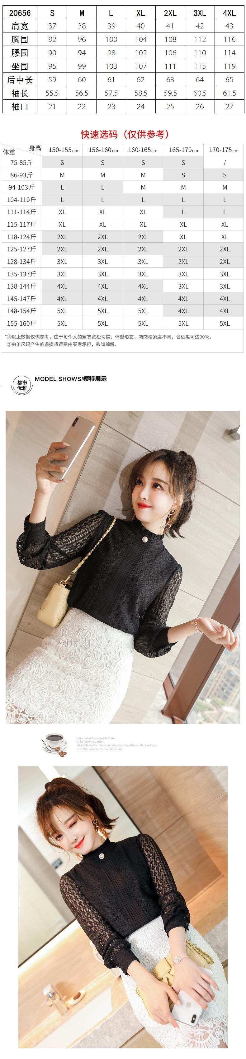 【新作】【送料無料】 スタイルエレガントな長袖ブラウス2020秋と冬の新しい女性のかぎ針編みの中空の黒いレースシャツ-アリババ ロング ブラック オータム 秋物 ウィンター 冬物 12b335043882910