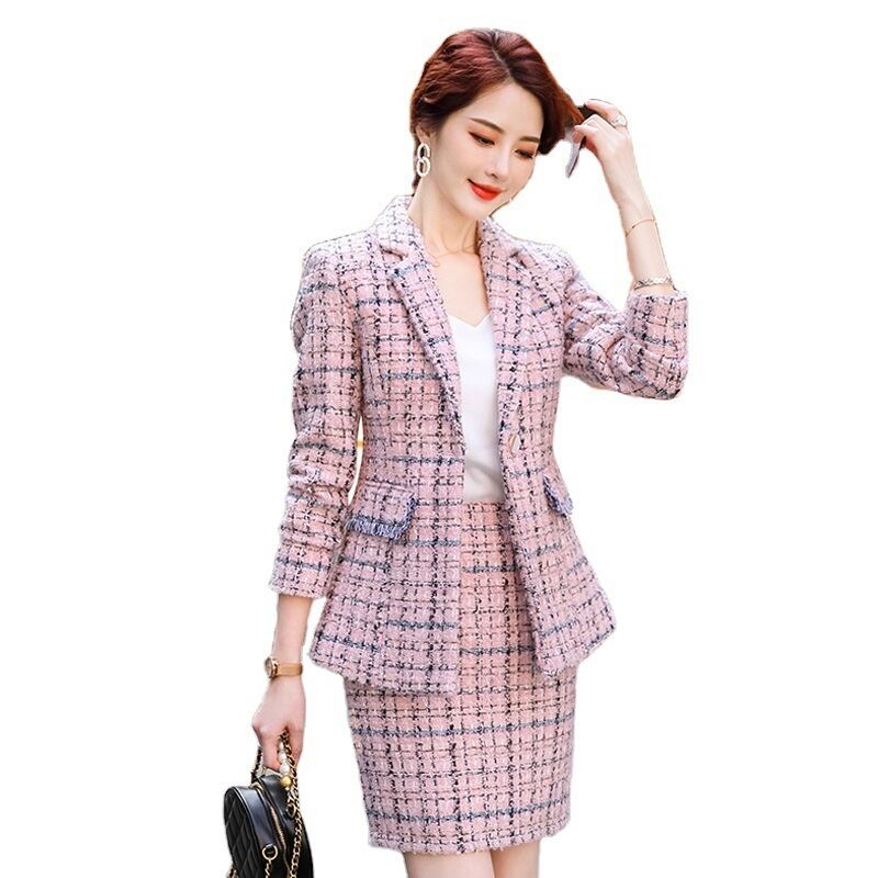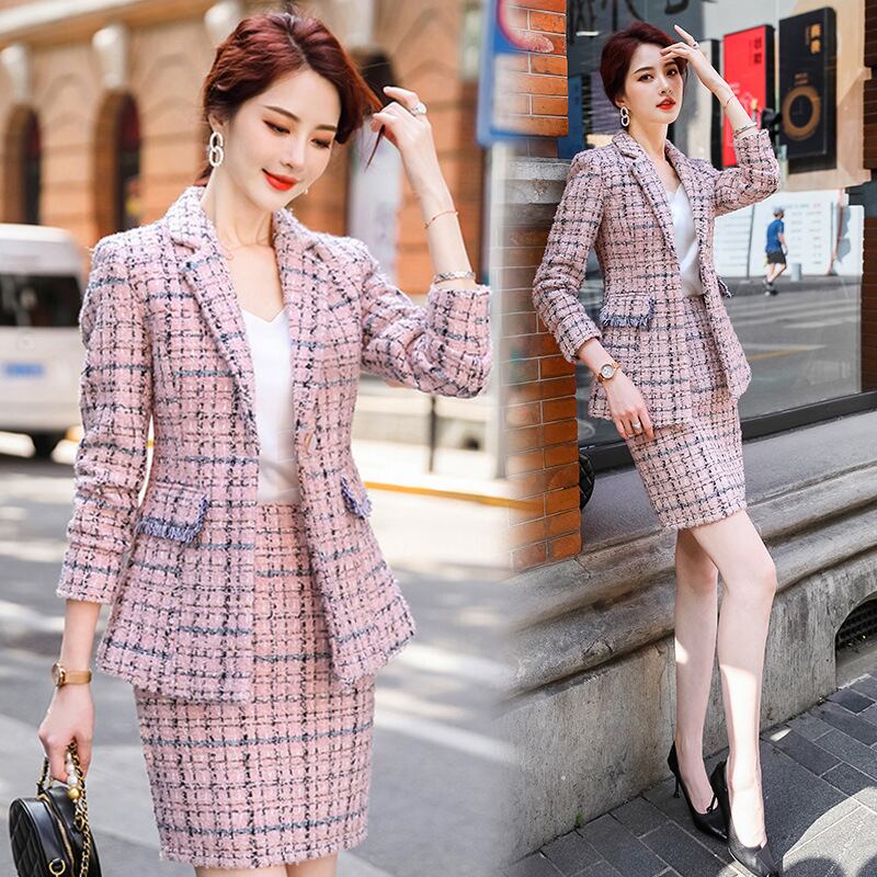 【新作】【送料無料】 2020年秋冬新スタイルスモールフレグランスウィンドウエスタンツイードデザインセンス長袖ジャケット&スカートツーピーススーツレディース-アリババ ロング ウィンター 冬物 12b346100523524