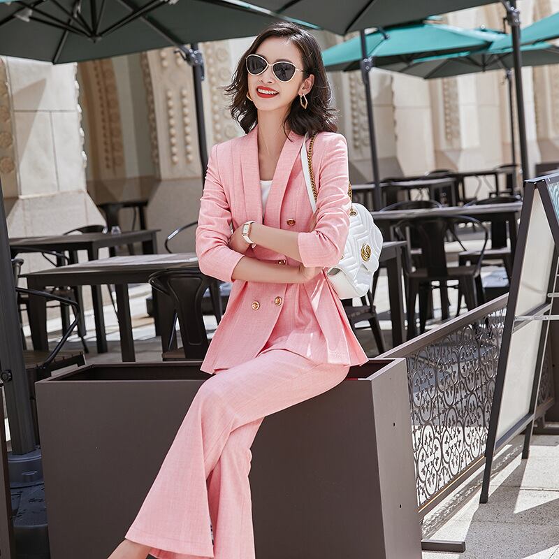 【新作】【送料無料】 ピンクの年齢を減らすデザインセンススーツパンツ女性の2020年秋冬の新しいハイウエストウエスタンスタイルフレアパンツツーピーススーツ-アリババ ハイウェスト レッド オータム 秋物 ウィンター 冬物 12b356247035562