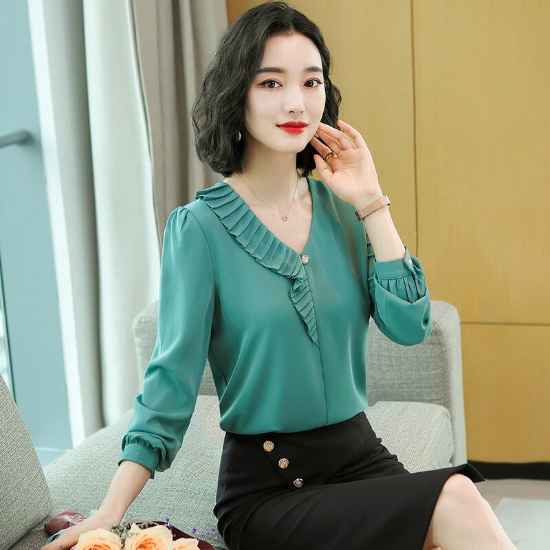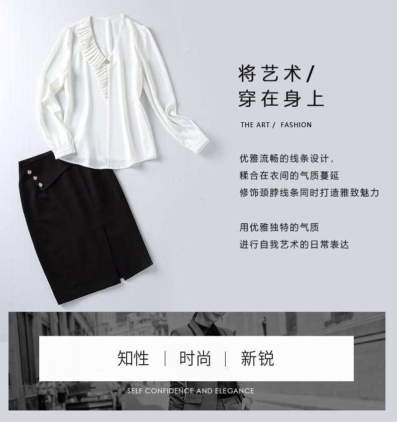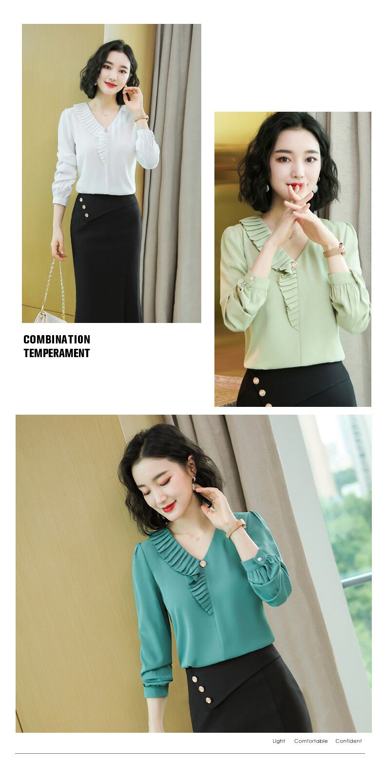 【新作】【送料無料】 レースプリーツステッチVネック長袖シャツ2020秋新作レディースプロホワイトカラー洋風ミートカバーシャツ ロング オータム 秋物 12b389115154439