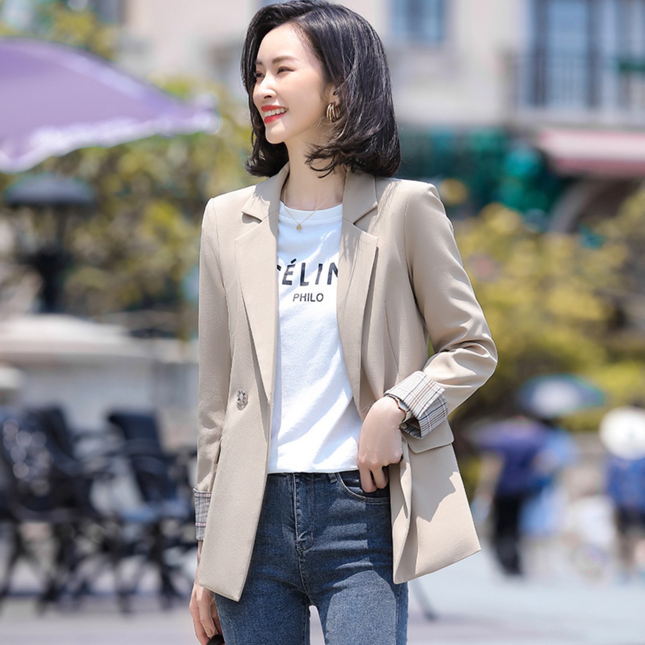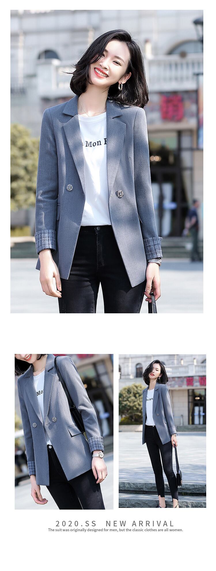 【新作】【送料無料】 ダブルブレストカラーコントラストカフポケット長袖スーツジャケット2020秋冬新作レディーススタイルスモールスーツジャケット-アリババ ロング オータム 秋物 ウィンター 冬物 12b325133977164