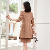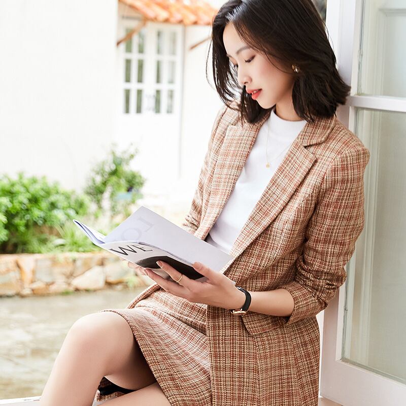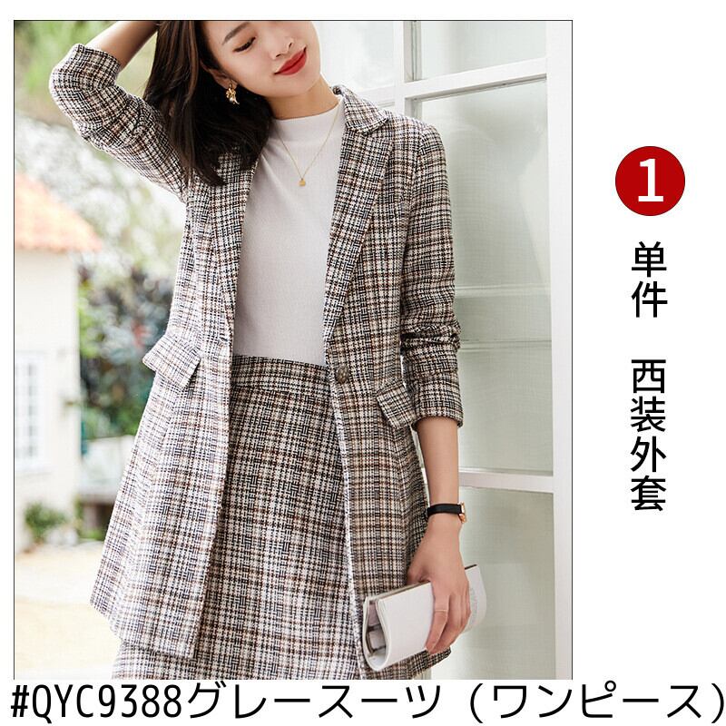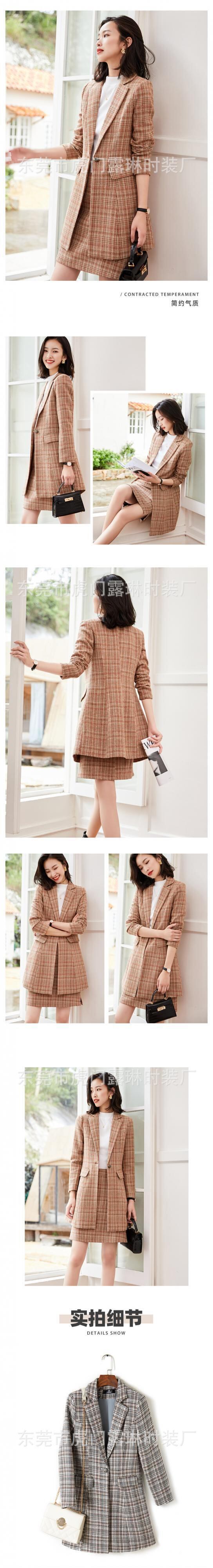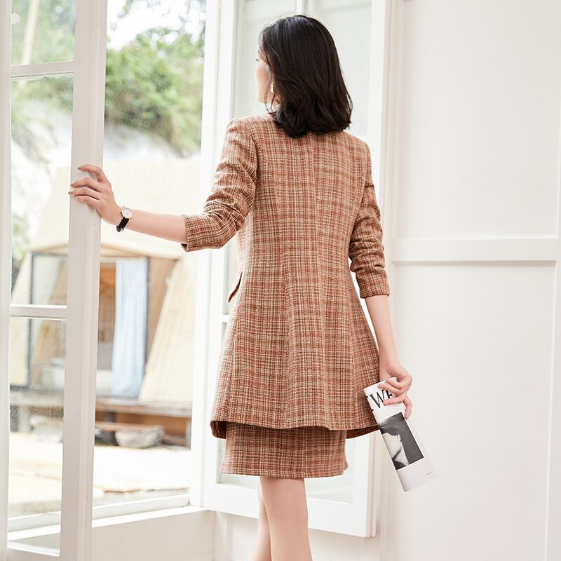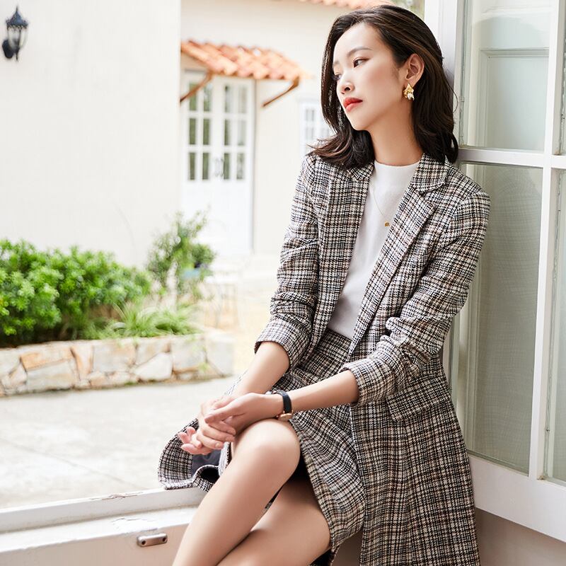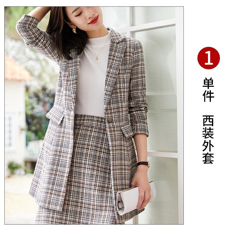 【新作】【送料無料】 ミッドレングスの千鳥格子チェックスーツジャケット、ハーフレングスのスカート、ツーピーススーツの女性の2020年秋冬の新しいプロウェア-アリババ オータム 秋物 ウィンター 冬物 12b32071286189