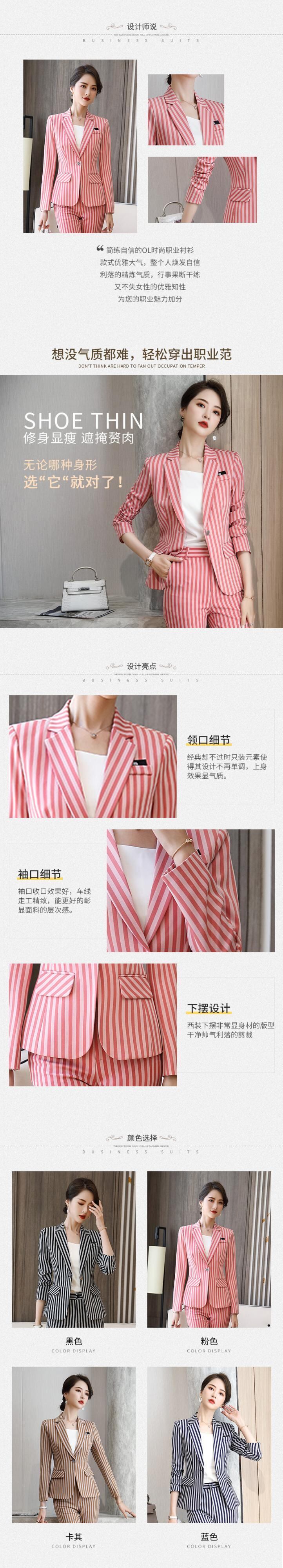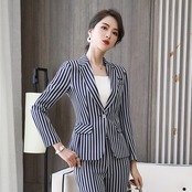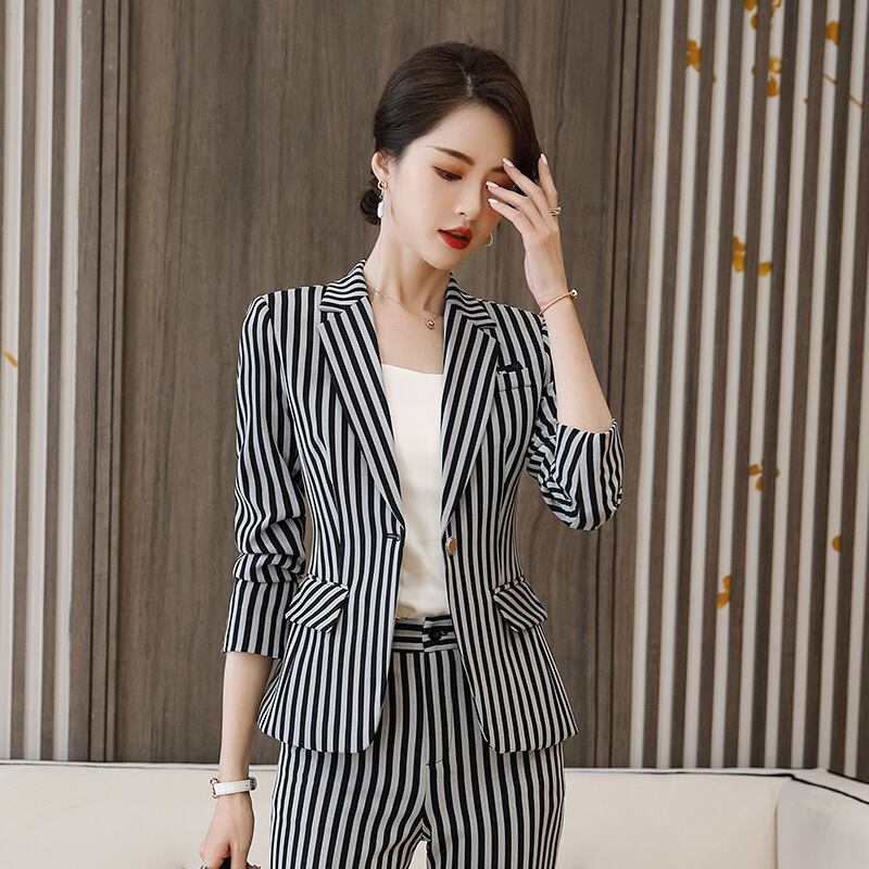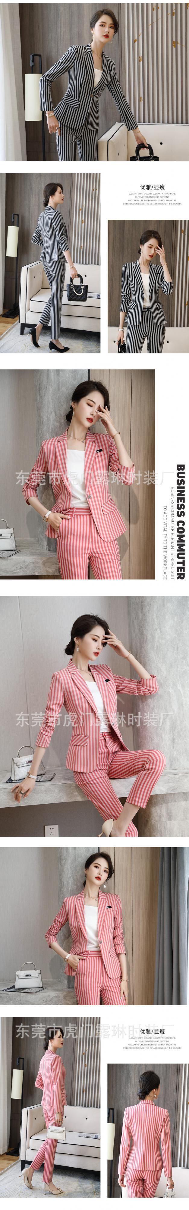 【新作】【送料無料】 ビジネスウェアストライプ長袖スーツジャケットとパンツツーピーススーツレディース2020秋と冬の新しいビジネスオーバーオール-アリババ ロング オータム 秋物 ウィンター 冬物 12b384587405095