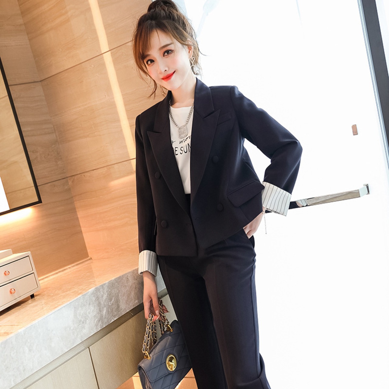 【新作】【送料無料】 ブルーデザインセンスショーツスーツパンツ女性2020秋と冬の新しい女性のプロの小さなスーツ-アリババ オータム 秋物 ウィンター 冬物 ブルマー 12b377794177199
