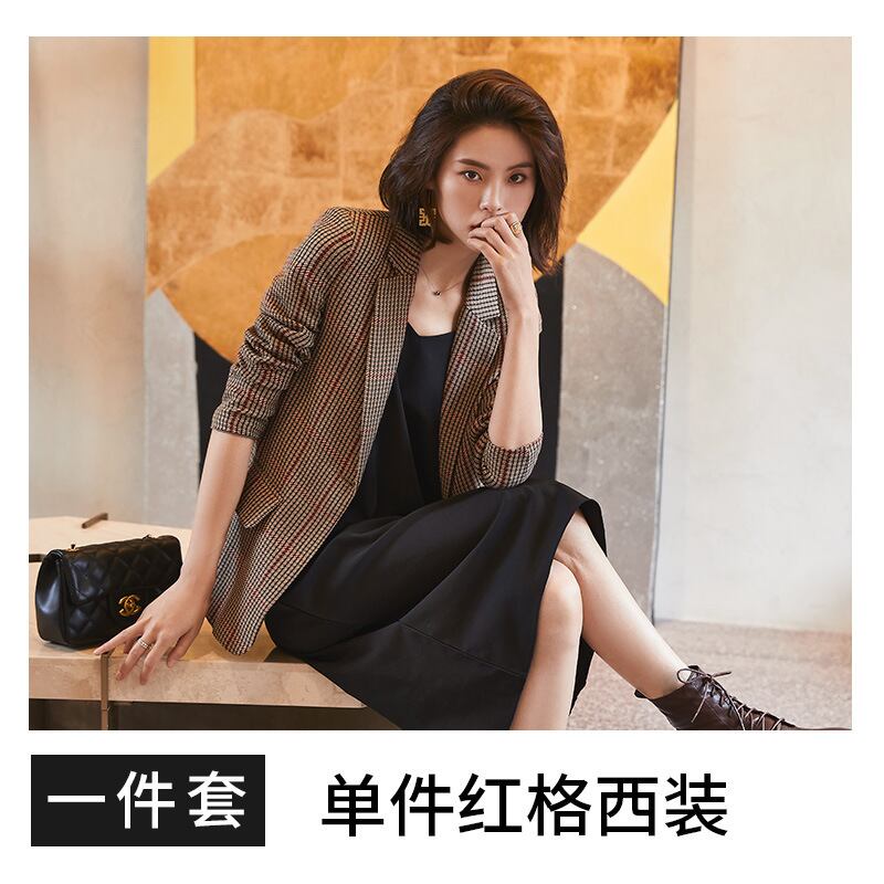 【新作】【送料無料】 千鳥格子チェックハンサムスーツ2020秋と冬の新しい女性のデザインセンスニッチファンプロフェッショナルウェアロングスーツ-アリババ オータム 秋物 ウィンター 冬物 12b333098139306