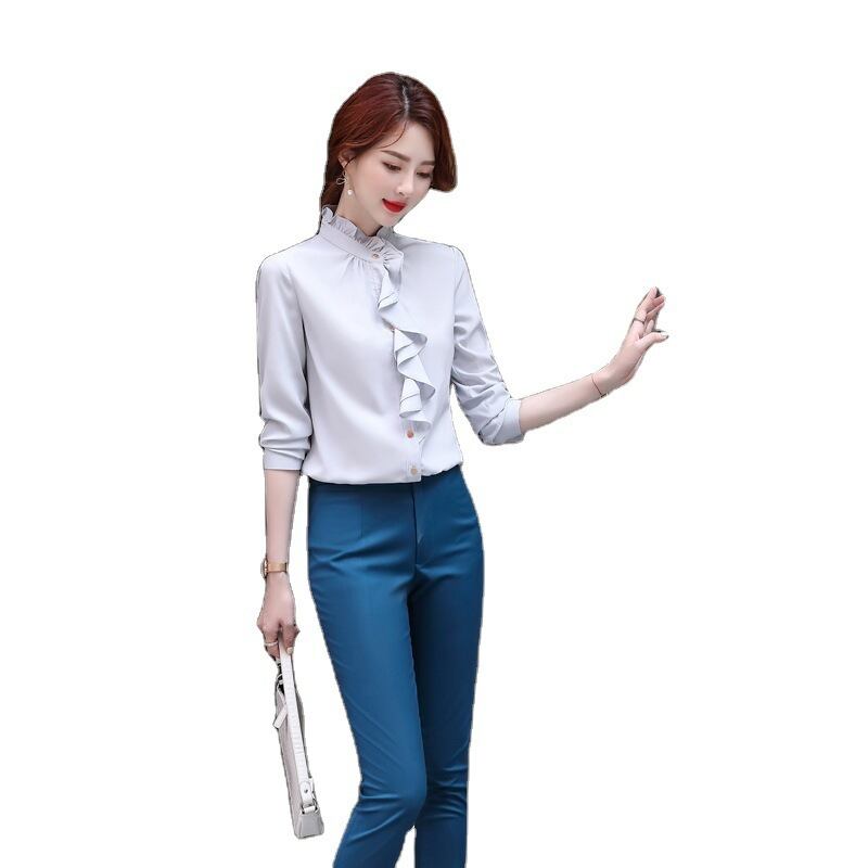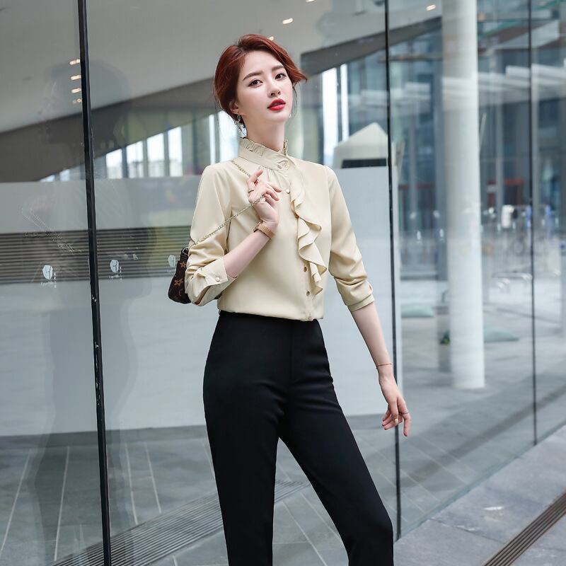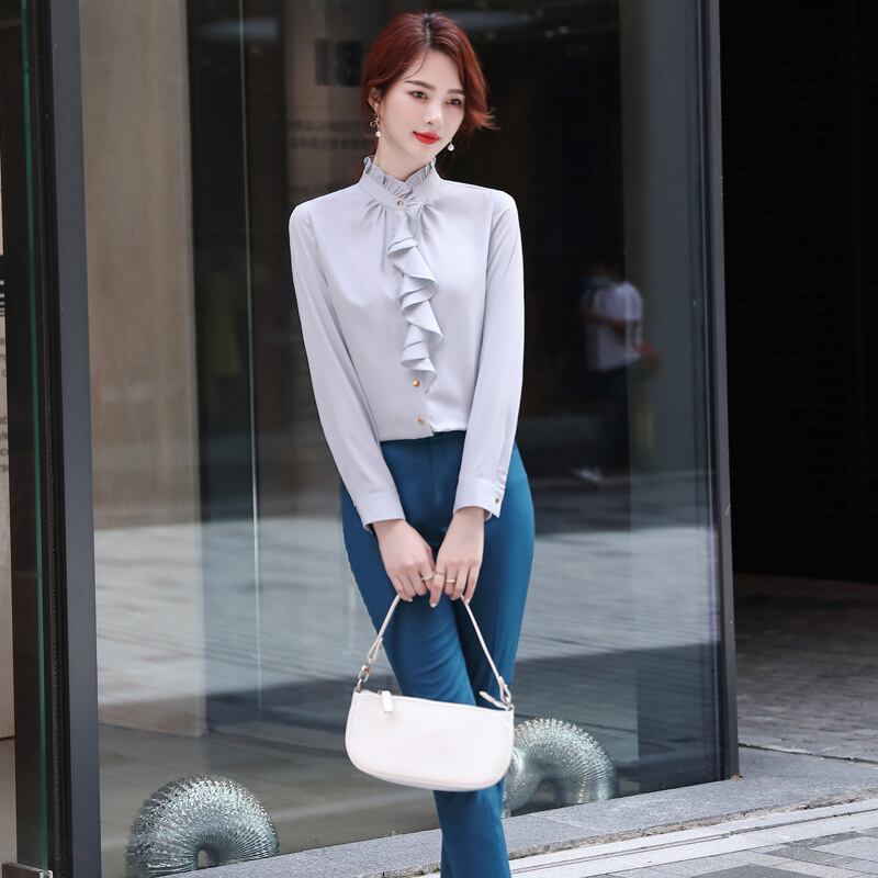 【新作】【送料無料】 パレススタイルの蓮の葉レース長袖シャツ2020秋冬女性のウエスタンスタイルの薄いプロのビジネスボトミングトップ-アリババ ロング オータム 秋物 ウィンター 冬物 12b355616634619