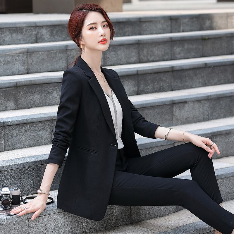 【新作】【送料無料】 小さなスーツジャケットの女性の2020年秋冬の新しいプロのネット赤黒ルース気質ツーピーススーツパンツのバージョン-アリババ レッド ブラック オータム 秋物 ウィンター 冬物 12b364346216539