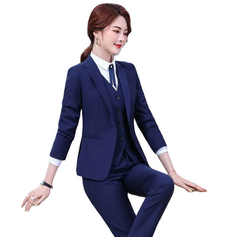 【新作】【送料無料】 ブルーストライプのプロのスーツジャケットパンツツーピーススーツの女性2020秋と冬の新しいホワイトカラーのマルオーバーオール-アリババ オータム 秋物 ウィンター 冬物 12b362312623773