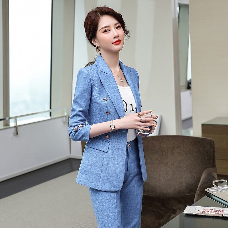 【新作】【送料無料】 可能な年齢削減ダブルブレストスーツ女性2020秋冬新しいプロの通勤OL気質ツーピーススーツ-アリババ オータム 秋物 ウィンター 冬物 12b34533384116
