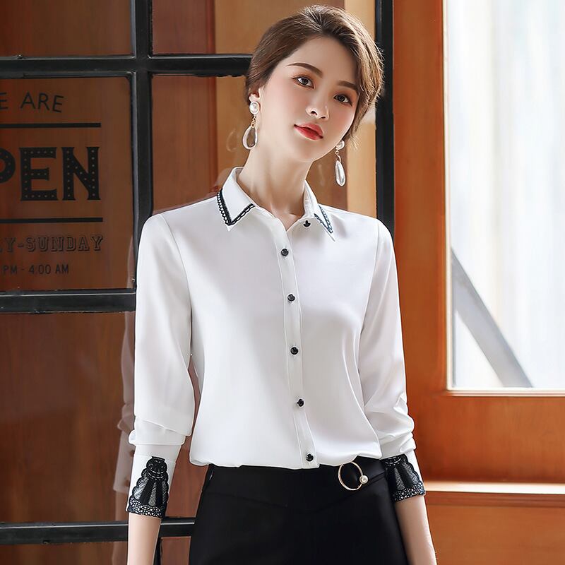 【新作】【送料無料】 2020年秋新作ピンクシフォンシャツレディース長袖ファッション気質スモールシャツオールマッチレースシャツ-アリババ ロング オータム 秋物 12b389239626435