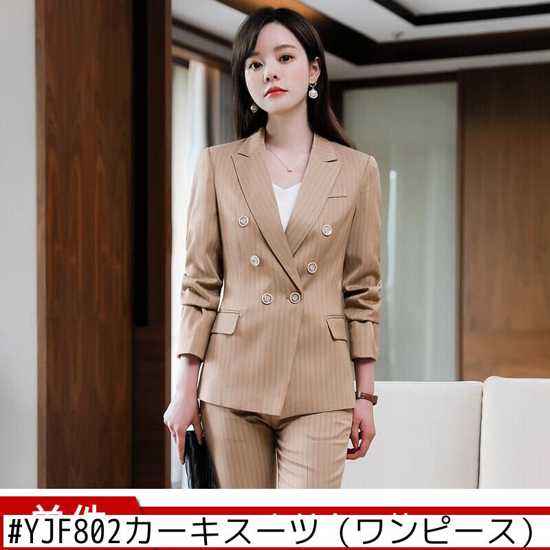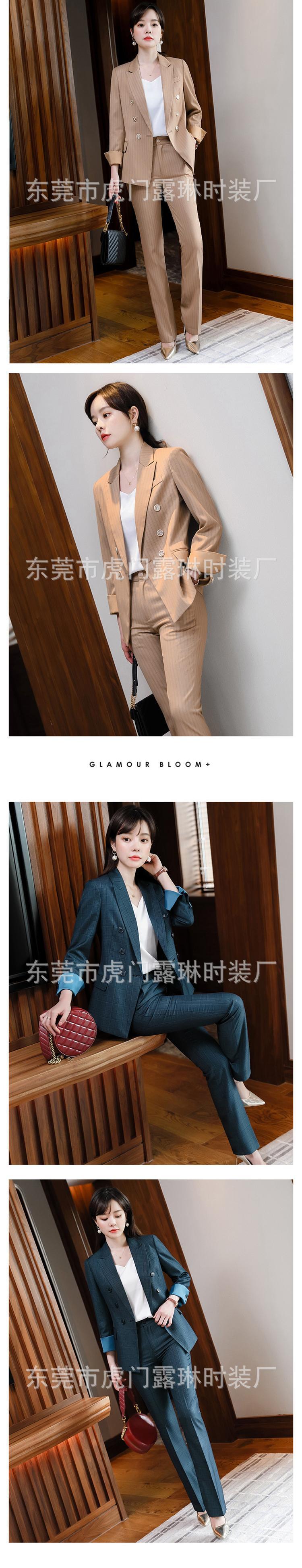 【新作】【送料無料】 ストライプカジュアルダブルブレストスーツ2020秋冬慎重な遊び心のあるツーピーススーツの女性の新しいプロフェッショナルバージョン-アリババ オータム 秋物 ウィンター 冬物 12b387975725296