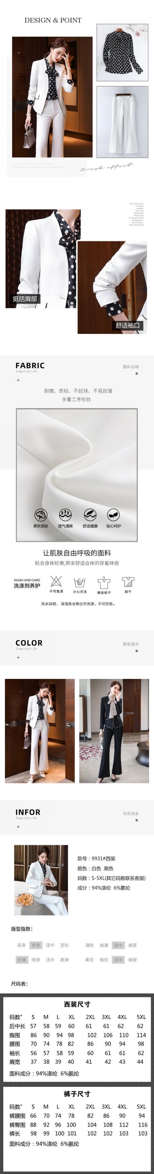 色:XN9931ブラックスーツ(ワンピース),XN9931ホワイトスーツ(ワンピース),XN9931ホワイトスーツ+ズボンツーピーススーツ,XN9931黒スーツ+ズボンツーピーススーツ,XN9931ホワイトスーツ+ハーフスカートツーピーススーツ,XN9931ブラックスーツ+ハーフスカートツーピーススーツ