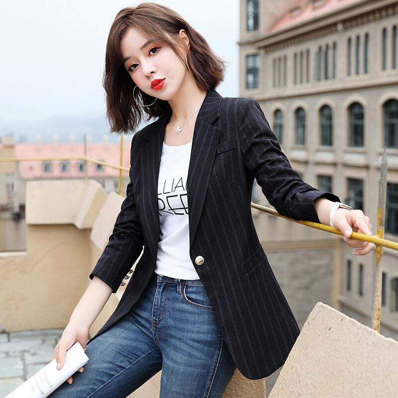 【新作】【送料無料】 スリムフィットストライプ長袖スモールスーツジャケット2020秋冬新作レディースプロウェアウエスタンスタイルネットレッドスーツジャケット-アリババ ロング オータム 秋物 ウィンター 冬物 12b371688559386