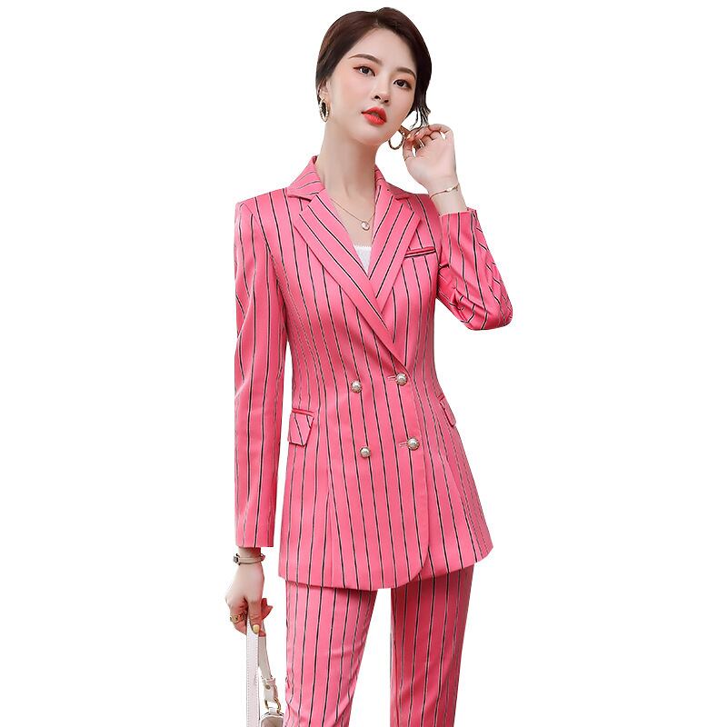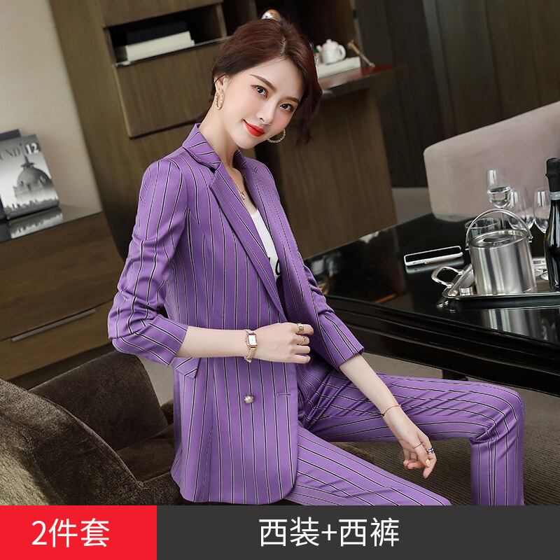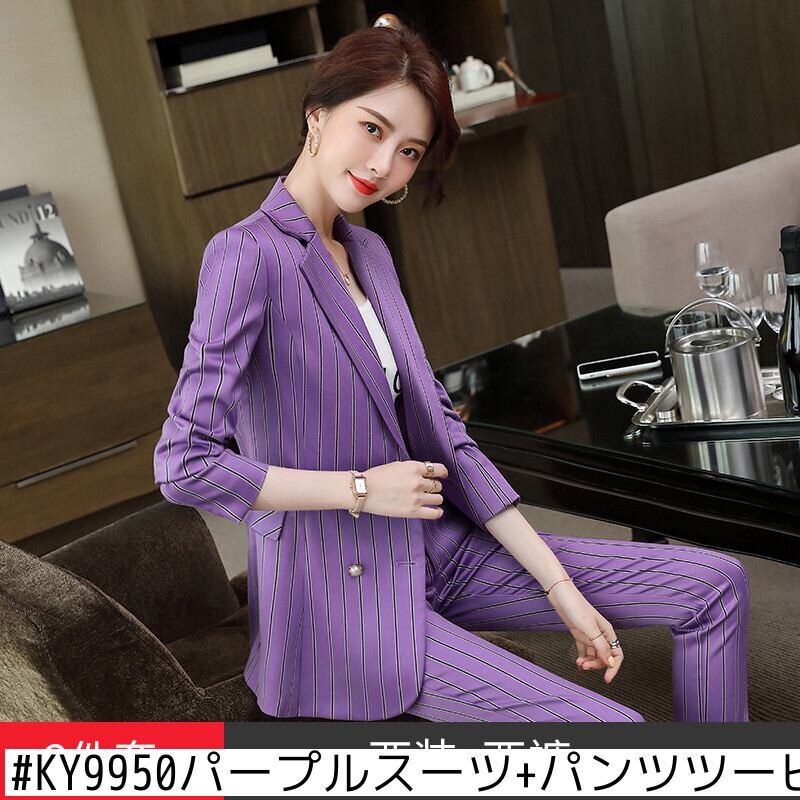 【新作】【送料無料】 パープル気質ストライプスーツツーピーススーツ2020年秋冬新しいプロの女神ファン対応スーツパンツ女性-アリババ ウィンター 冬物 12b331674448564