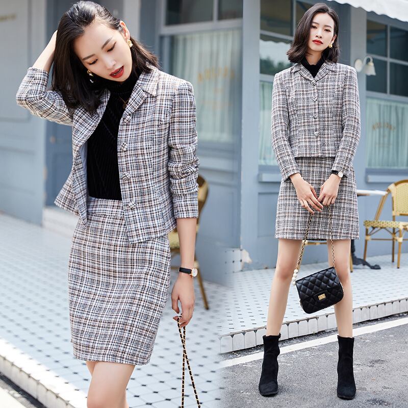 【新作】【送料無料】 シングルブレスト初秋ネットレッドスーツスカート2020秋冬新作スモールフレグランスプロフェッショナルショートハイウエストツーピースセット-アリババ ハイウェスト オータム 秋物 ウィンター 冬物 12b386042188531