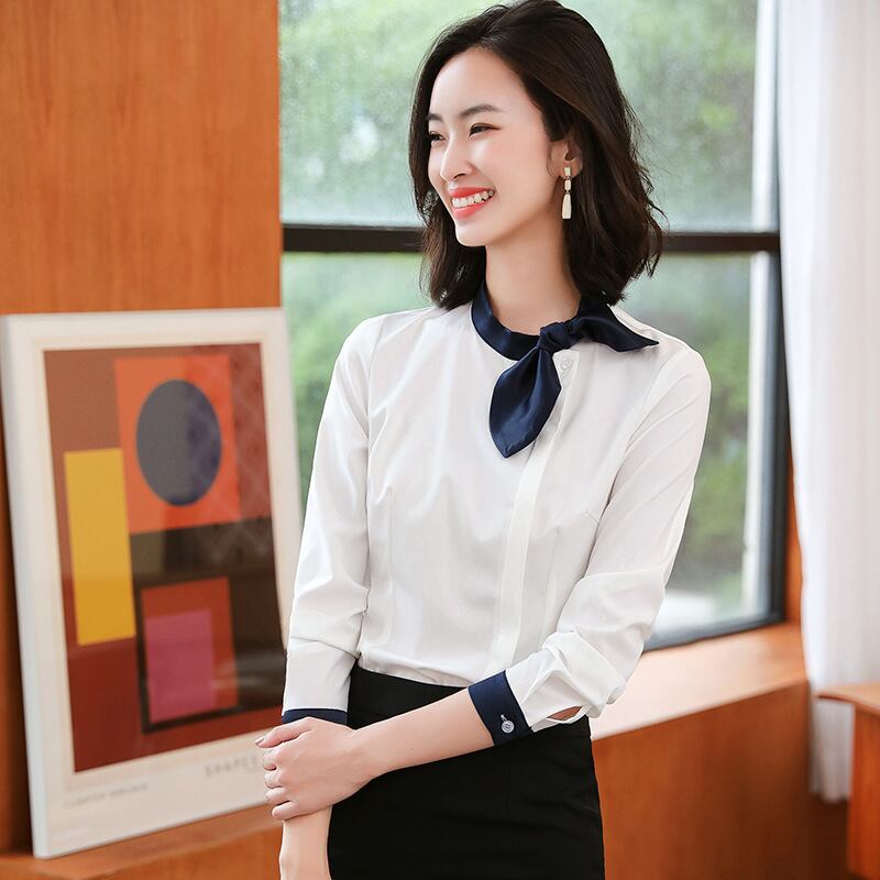 【新作】【送料無料】 対照的なラウンドネックのレースアップ隠しボタン長袖シャツ2020年秋冬の新しい女性用ボトミングシャツプロの作業服-アリババ ロング ウィンター 冬物 Oネック 12b365784049859