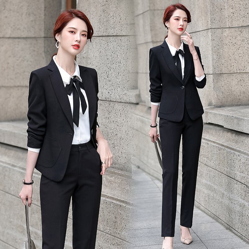【新作】【送料無料】 黒のプロのスーツパンツ女性の2020年秋と冬の新しい西洋スタイルのマルウェアホワイトカラーのインタビュー作業服ツーピーススーツ-アリババ ブラック オータム 秋物 ウィンター 冬物 12b332367486580