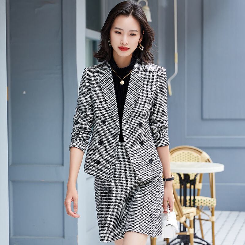 【新作】【送料無料】 2020年秋冬新作レディースカジュアルスーツグレーウール長袖スモールフレグランスジャケットハーフスカートツーピーススーツレディース-アリババ ロング オータム 秋物 ウィンター 冬物 12b332123608739