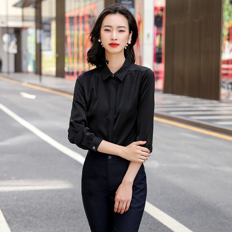 【新作】【送料無料】 2020年秋冬新作ブラックシャツレディースプロボトミングスリムビジネスコミュータースリムで有能な長袖シャツ-アリババ ロング オータム 秋物 ウィンター 冬物 12b372612568839