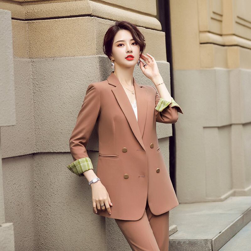 【新作】【送料無料】 ダブルブレストのファッションスーツの女性の2020年秋冬の新しいプロの通勤者ホワイトカラー気質の薄いスーツ-アリババ オータム 秋物 ウィンター 冬物 12b339365129643