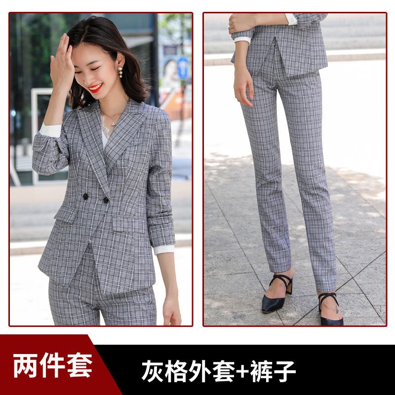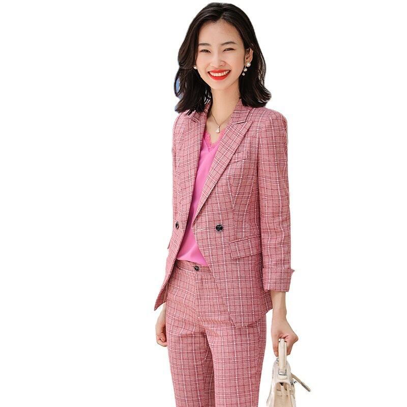 【新作】【送料無料】 ピンクのチェック柄の小さなスーツパンツスーツ女性の2020年秋冬の新しいプロのOL気質大学生のマルスーツ-アリババ オータム 秋物 ウィンター 冬物 12b349670339367