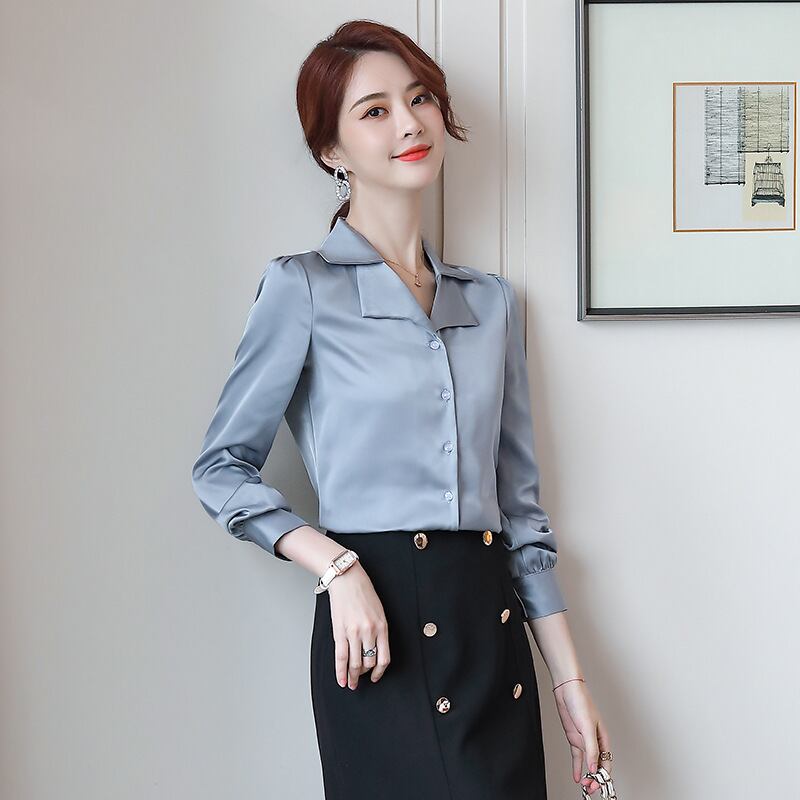 【新作】【送料無料】 2020年秋冬の新しいサテンラペルシャツ女性用長袖ルーズで薄い女神ファンチエンベーストップ-アリババ ロング ウィンター 冬物 12b31967176514