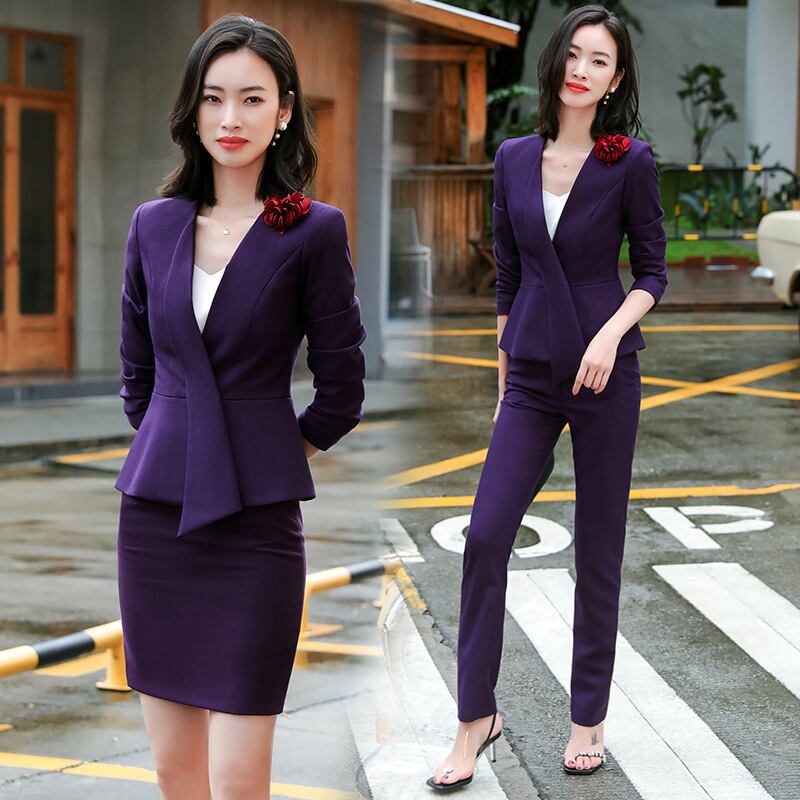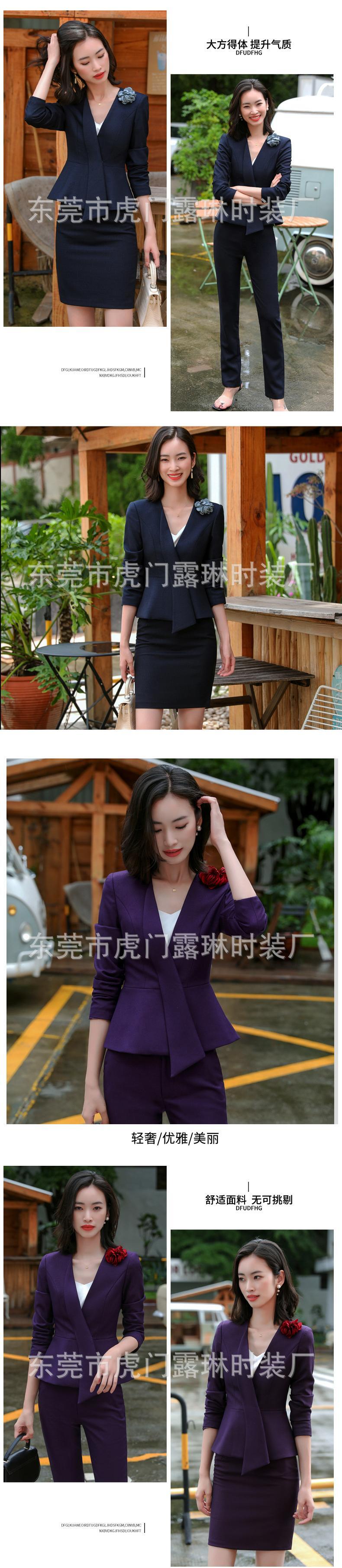 【新作】【送料無料】 Vネックスーツビジネスウェアスーツスーツ女性2020秋冬新宝石店エルレセプション作業服-アリババ オータム 秋物 ウィンター 冬物 12b319417595417
