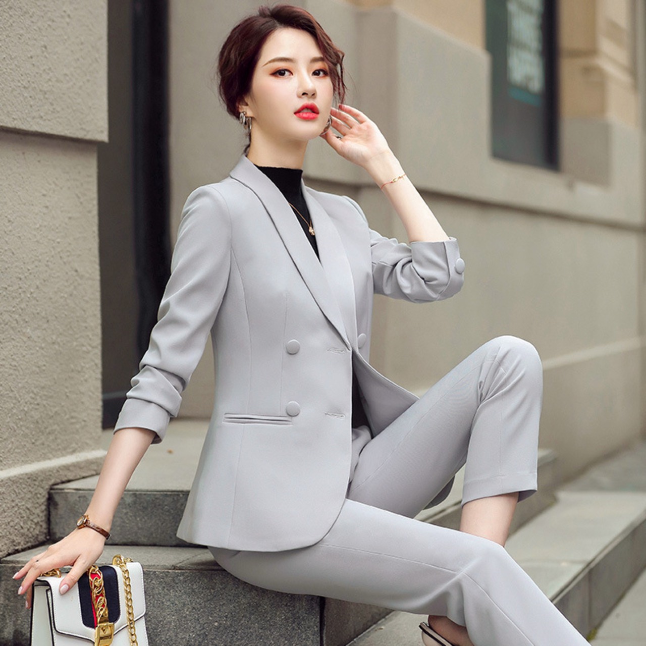 【新作】【送料無料】 ビジネスウェアコミュータースーツウィメンズ2020秋冬ニューウィメンズデザインセンスニッチ年齢を減らすツーピーススーツ-アリババ オータム 秋物 ウィンター 冬物 12b379913480432