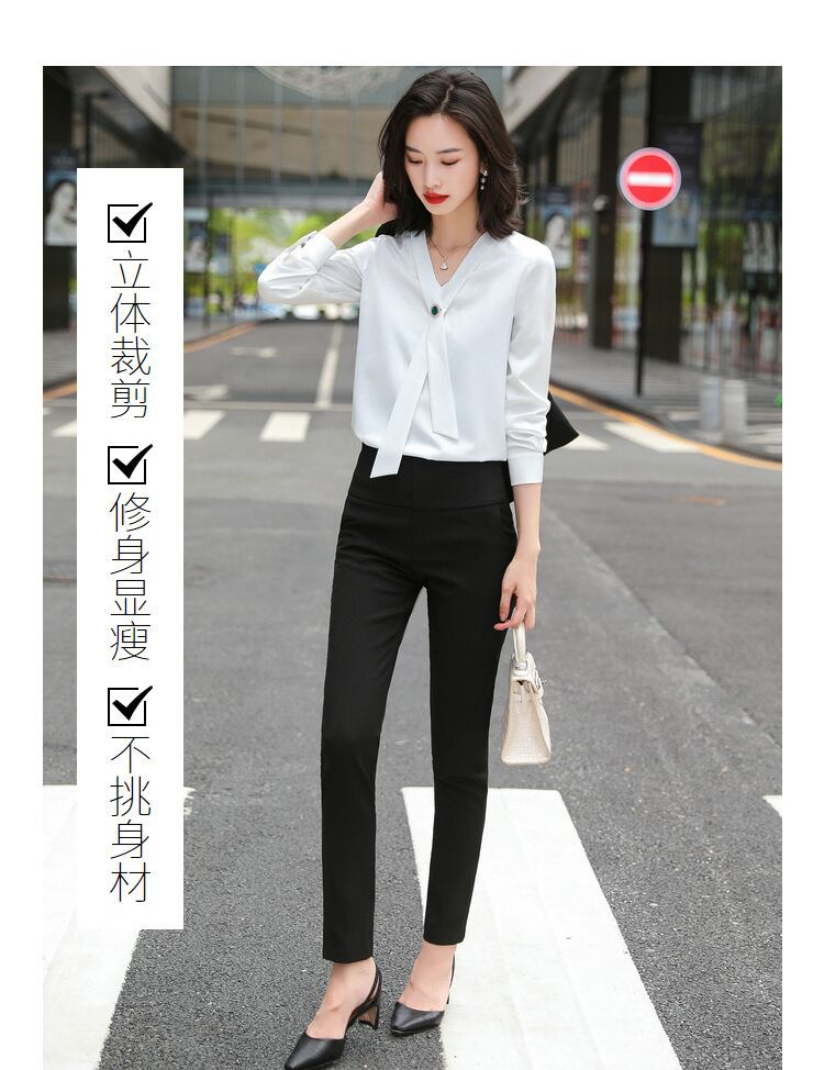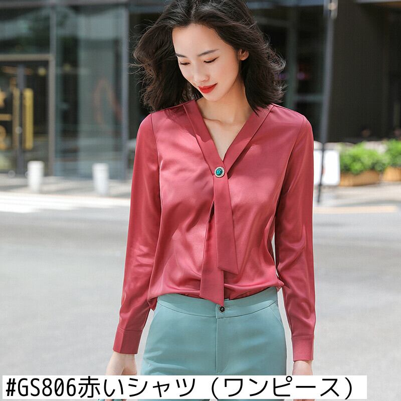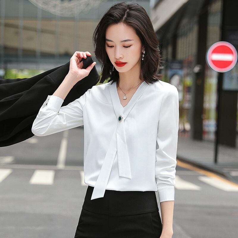 【新作】【送料無料】 2020年秋冬新作Vネックスーツ長袖シャツレディース気質シフォンストリーマーボトミングプロフェッショナルスリムトップ-Alibaba ロング オータム 秋物 ウィンター 冬物 12b398788921702