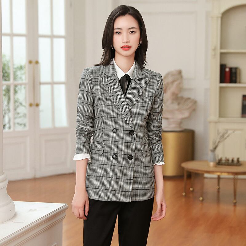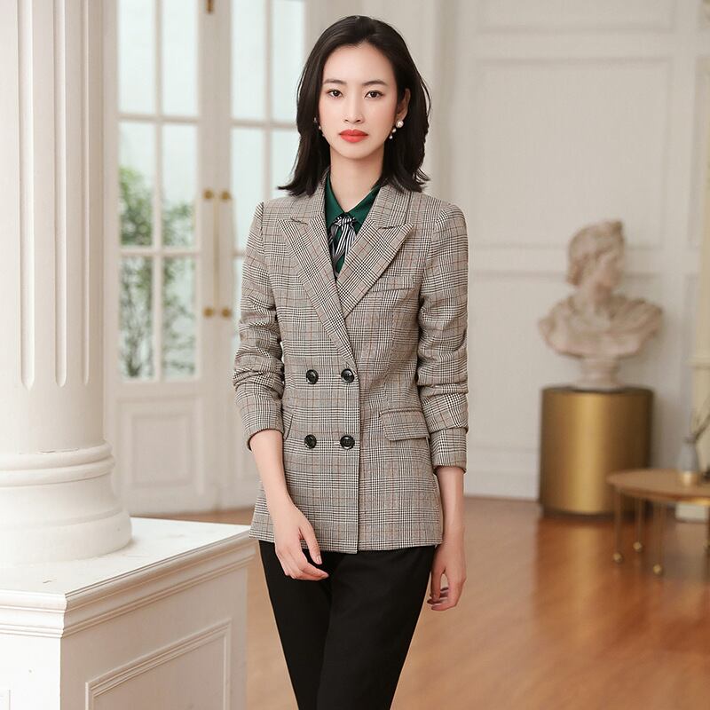 【新作】【送料無料】 2020年秋冬新作千鳥格子ダブルブレストスーツレディースルーズカジュアルプロウェアネットレッドスモールスーツ-アリババ オータム 秋物 ウィンター 冬物 12b354578436653