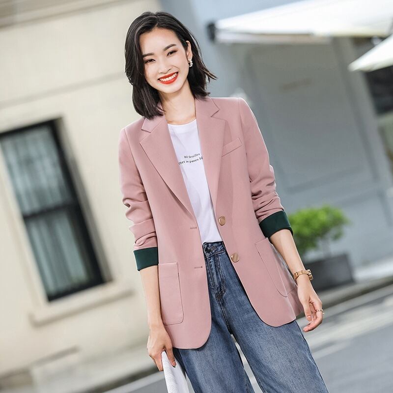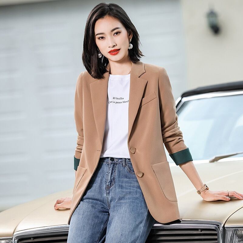 【新作】【送料無料】 対照的な色の袖口ファッションスモールスーツジャケット2020秋と冬の新しい女性のビジネスウェアコミュータールーズスーツ-アリババ オータム 秋物 ウィンター 冬物 12b345225003960