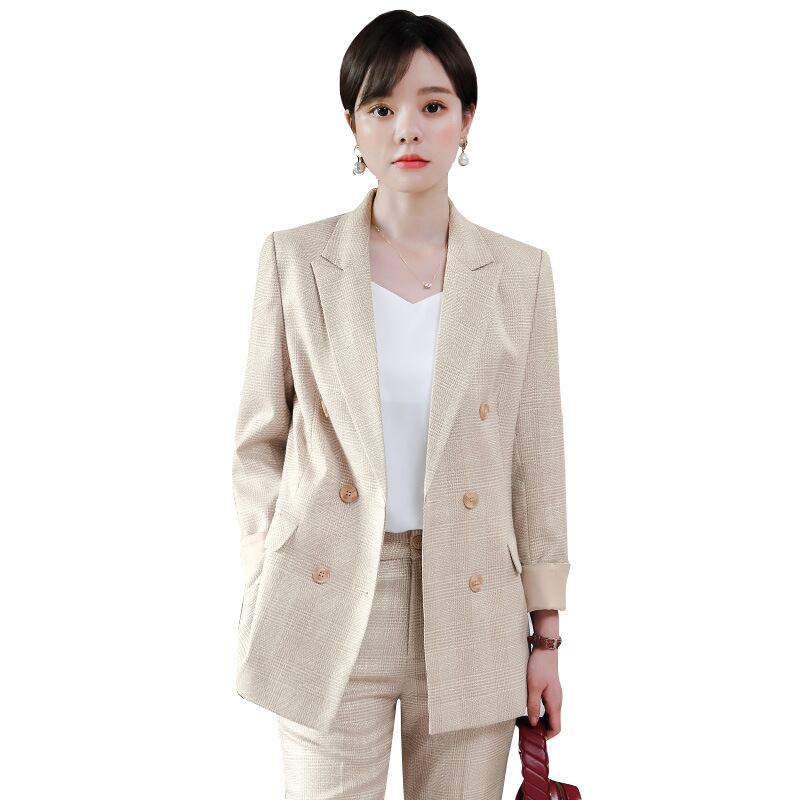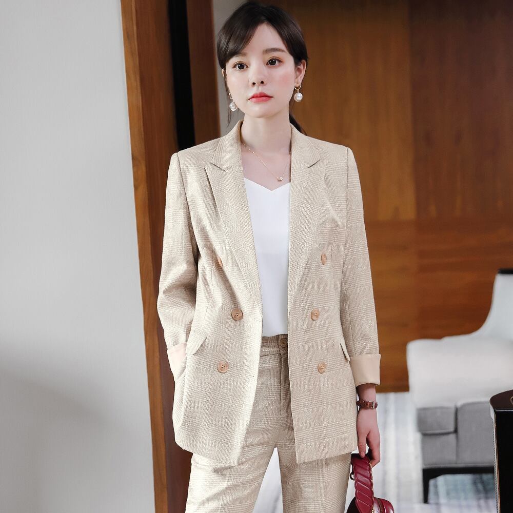【新作】【送料無料】 ミッドレングスのハイウエストレースアップスーツジャケットとパンツツーピーススーツレディース2020秋と冬の新しい市松模様のプロのウェア-アリババ レッド オータム 秋物 ウィンター 冬物 12b327793701940