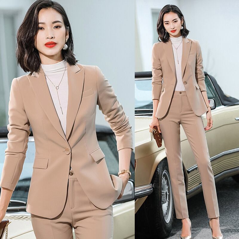 【新作】【送料無料】 女神ファンスーツ女性の2020年秋冬の新しいプロのホワイトカラーインタビュー作業服は薄いツーピーススーツパンツです-アリババ オータム 秋物 ウィンター 冬物 12b319054822592