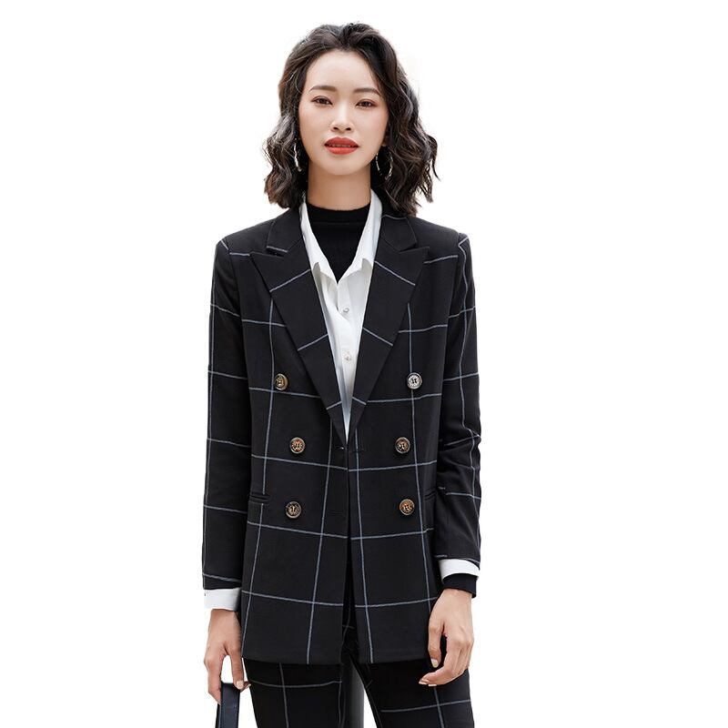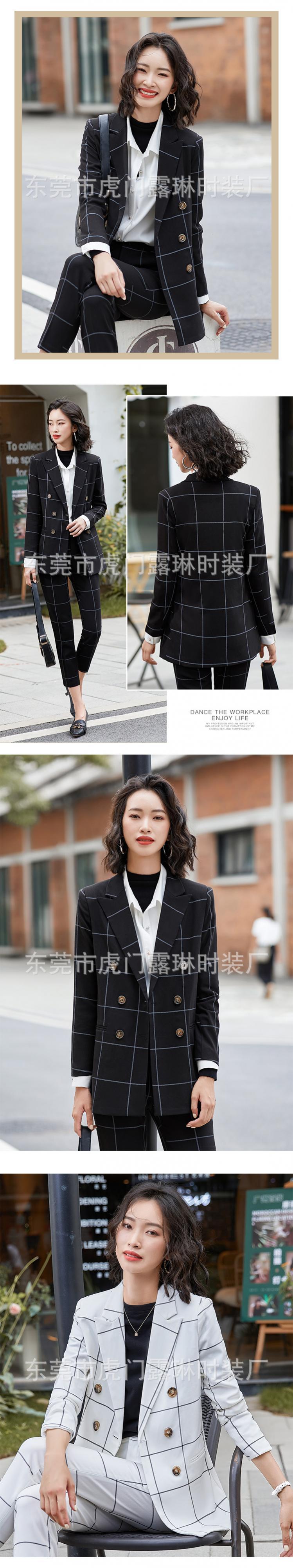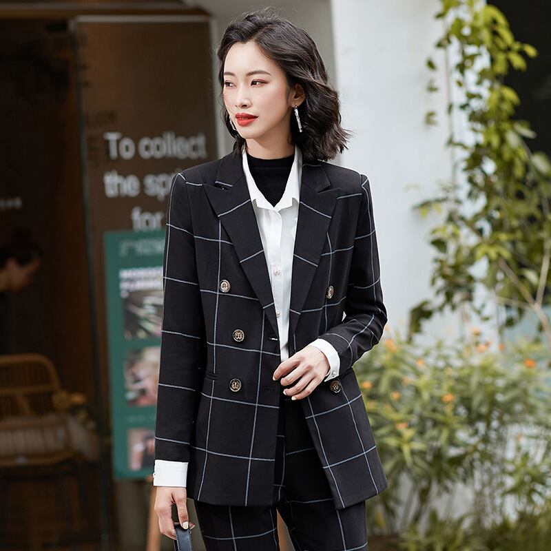 【新作】【送料無料】 ホワイトファッションダブルブレストスーツパンツ2020秋と冬の新しいプロのカジュアルチェック柄の女神ファンスーツツーピース-アリババ オータム 秋物 ウィンター 冬物 12b329378866197