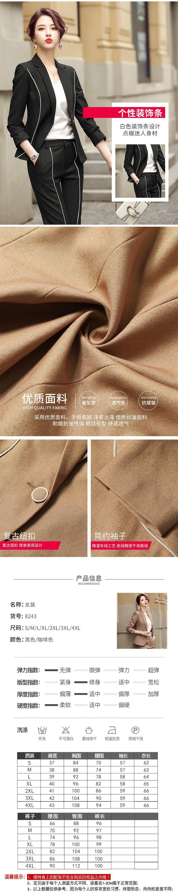 色:LY-8243ブラウンスーツ(ワンピース),LY-8243ブラックスーツ(ワンピース),LY-8243黒スーツ+ズボンツーピーススーツ,LY-8243ブラウンスーツ+パンツツーピーススーツ