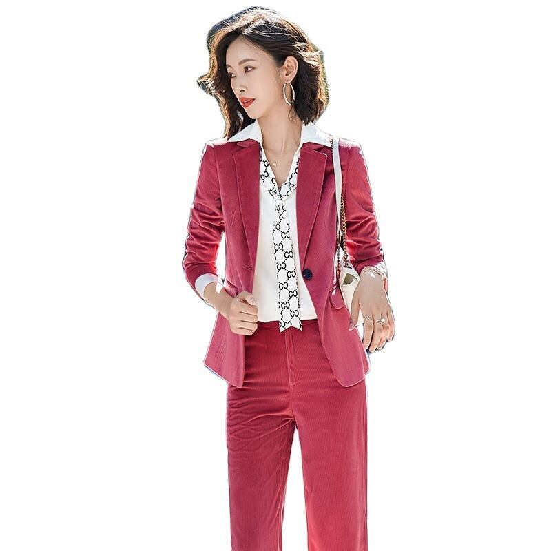 【新作】【送料無料】 ゴールドベルベットレッドスーツレディース2020秋冬スリムフィット女神ファンスーツの新バージョン-アリババ オータム 秋物 ウィンター 冬物 12b37001213751