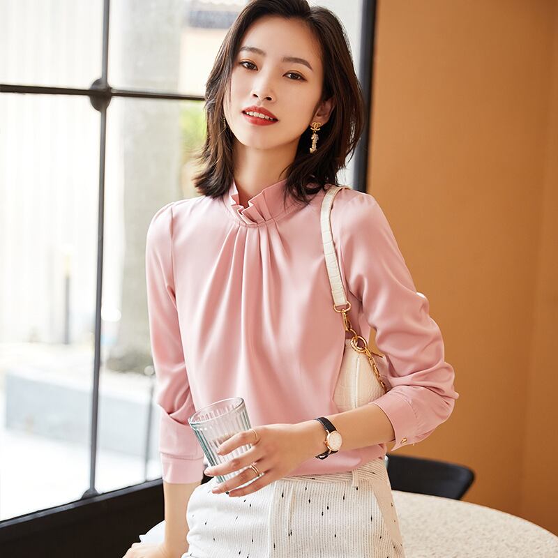 【新作】【送料無料】 ピンクの年齢を減らす女性の長袖シャツ2020秋と冬の新しい女性のルーズプルオーバーラウンドネックファッションボトミングトップ-アリババ ロング オータム 秋物 ウィンター 冬物 Oネック 12b32276409571