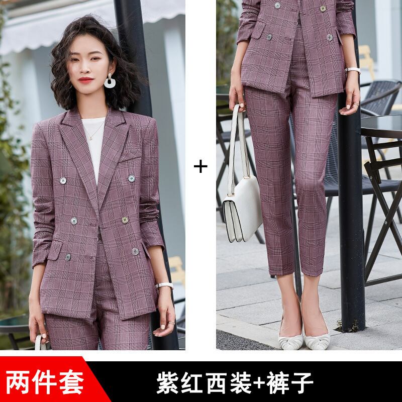 【新作】【送料無料】 女神ファンダブルブレスト気質スーツ女性の2020年秋冬の新しいプロの通勤者と有能なツーピーススーツ-アリババ オータム 秋物 ウィンター 冬物 12b375668693570