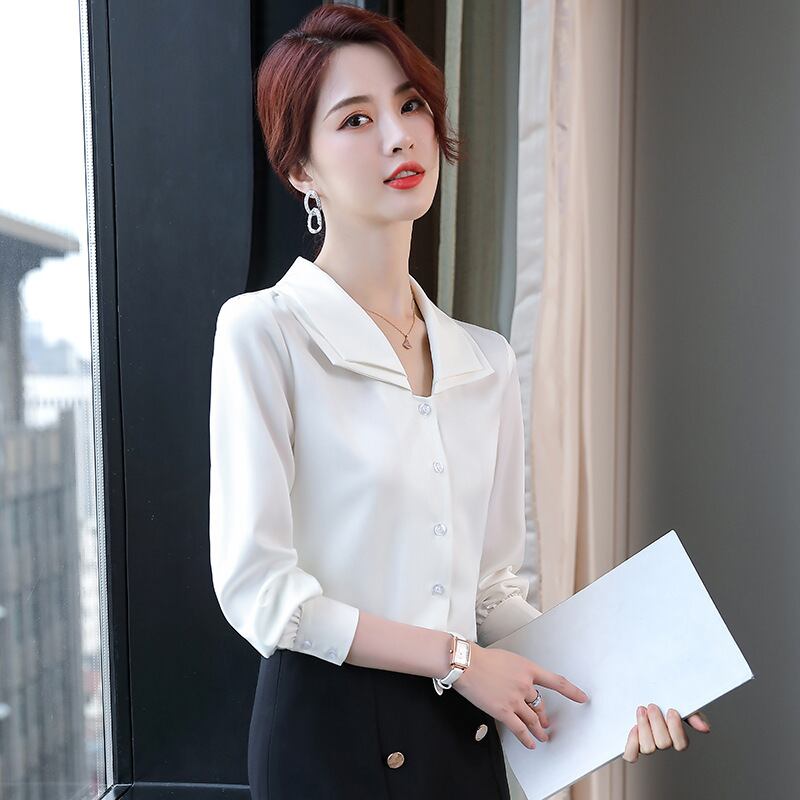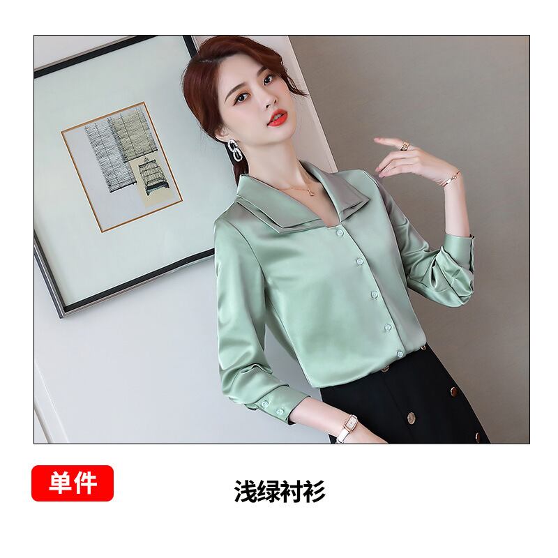 【新作】【送料無料】 2020年秋冬新作サテン長袖ボトミングシャツレディースデザインセンスニッチプロウェアスタイルルーズトップ-アリババ ロング オータム 秋物 ウィンター 冬物 12b346275995686