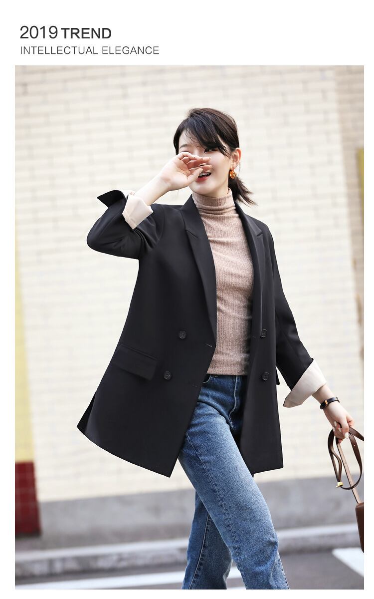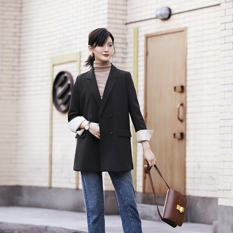 【新作】【送料無料】 2020年秋新作スモールスーツレディースジャケットミドル丈オールマッチブラックブレザーレディースシックスーツ-アリババ オータム 秋物 12b312032163174