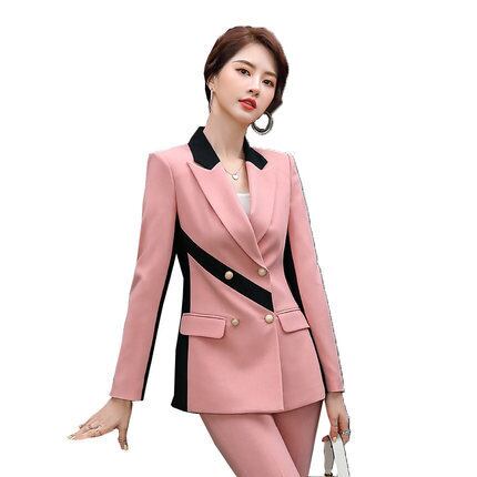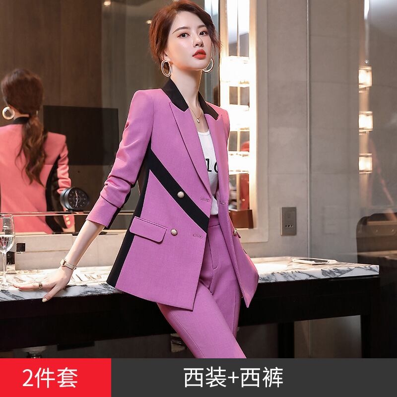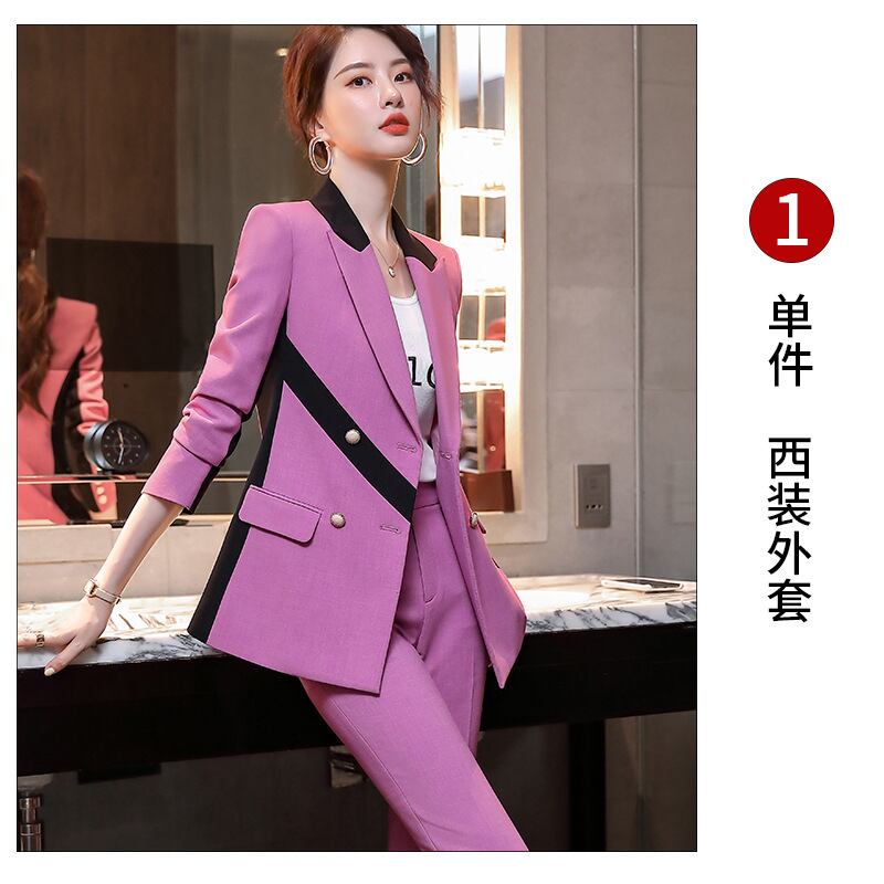 【新作】【送料無料】 パープルファッションスーツレディース2020秋冬新コントラストカラーステッチデザインセンススーツワイドレッグパンツツーピーススーツ-アリババ オータム 秋物 ウィンター 冬物 ワイドパンツ 12b358242641777