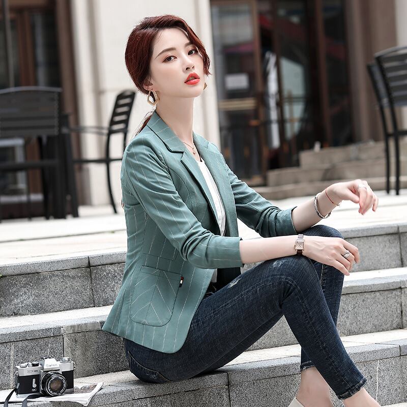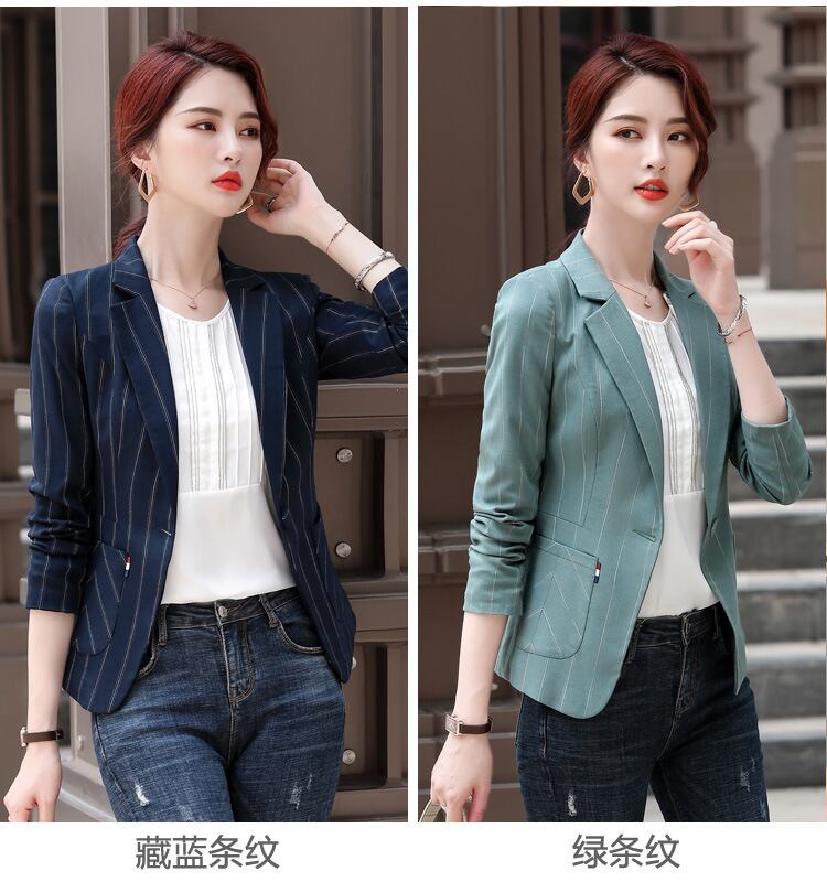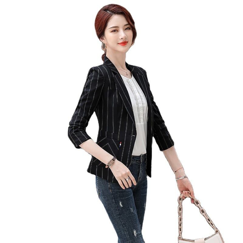 【新作】【送料無料】 小さな新鮮なハイウエストスリムスモールスーツジャケット2020秋と冬の新しい女性のストライプショートスタイル香港スタイルの薄いスーツ-アリババ オータム 秋物 ウィンター 冬物 12b310590496317