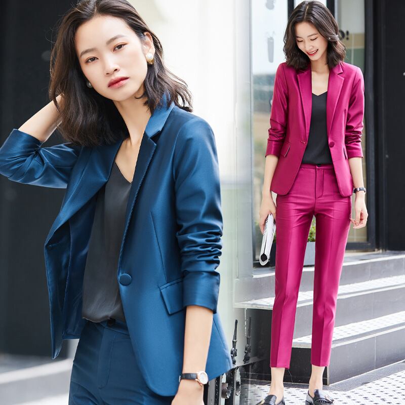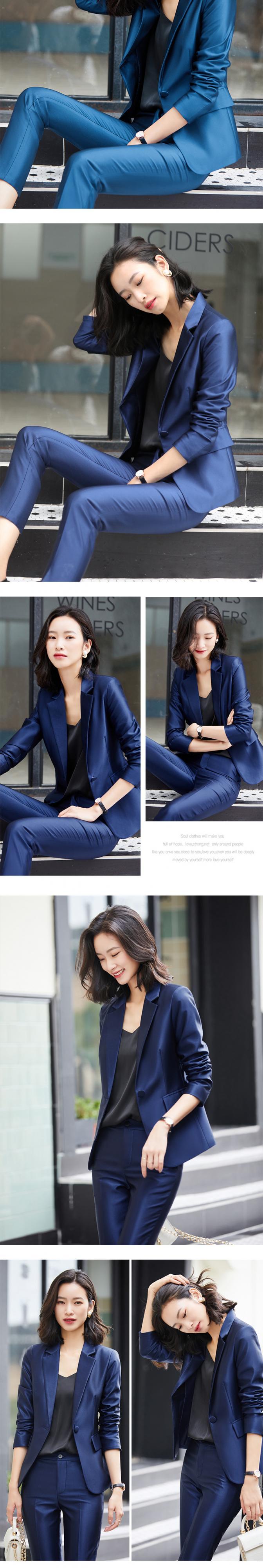 【新作】【送料無料】 秋と冬の新しい模造アセテートレディースワンボタン長袖スーツレディースプロウェアピーコックブルーツーピーススーツレディース-アリババ ロング オータム 秋物 ウィンター 冬物 12b353481324708