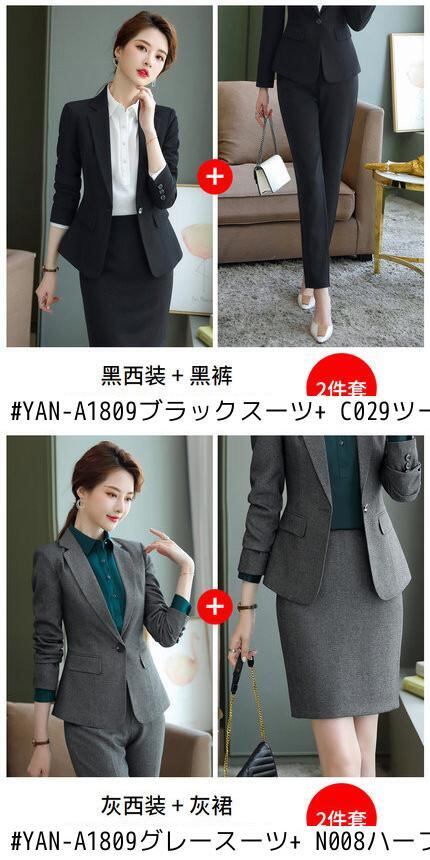 色:YAN-A1809グレースーツ(ワンピース),YAN-A1809ブラックスーツ(ワンピース),YAN-A1809グレースーツ+C013ツーピーススーツ,YAN-A1809ブラックスーツ+C029ツーピーススーツ,YAN-A1809グレースーツ+N008ハーフスカートツーピーススーツ,YAN-A1809ブラックスーツ+N089ハーフスカートツーピーススーツ,白いシングルシャツ,グリーンシングルシャツ,黒のシングルスカート,黒のシングルパンツ,グレーシングルパンツ,グレーシングルスカート