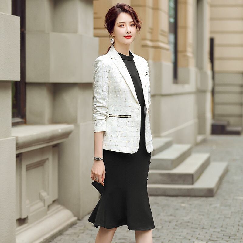 【新作】【送料無料】 白い格子縞の小さなスーツのプロのジャケット2020秋と冬の新しい女性のスタイルの気質デザインセンススーツジャケット-アリババ ホワイト オータム 秋物 ウィンター 冬物 12b34620072726