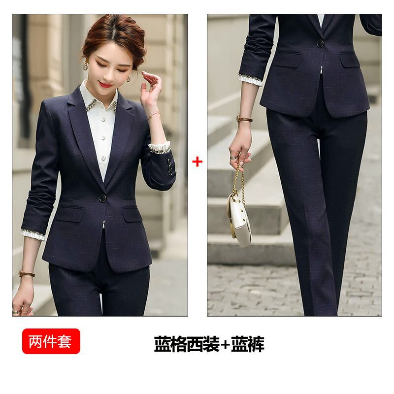 【新作】【送料無料】 ブルーチェック柄スーツパンツ2020秋冬新プロカジュアル気質対応気質ツーピースセット-アリババ オータム 秋物 ウィンター 冬物 12b349121816978