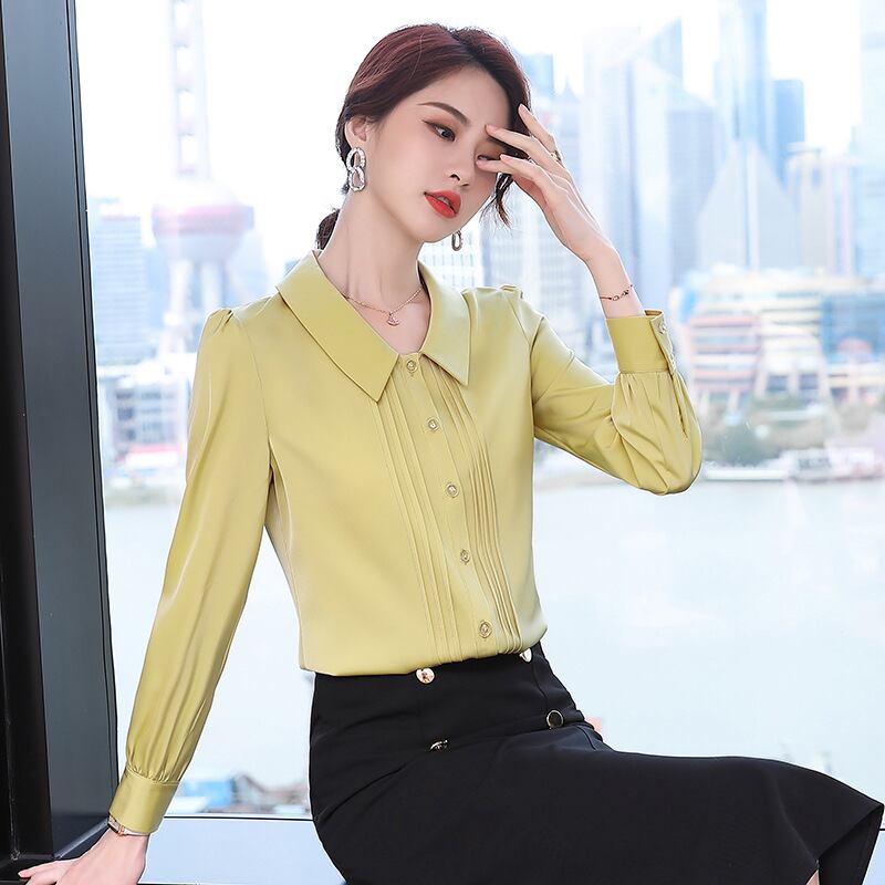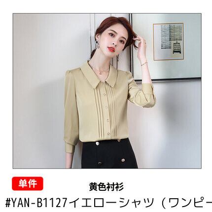 【新作】【送料無料】 黄色の長袖気質シャツ2020秋と冬の新しい女性のプロバージョンルーズ女神ファン通勤ベースコート-アリババ ロング オータム 秋物 ウィンター 冬物 12b360051758431