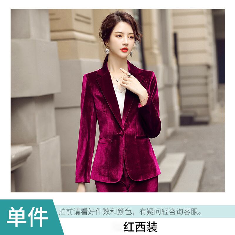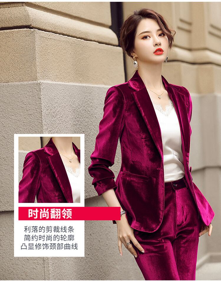 【新作】【送料無料】 OLプロの長袖レディースパンツスーツインタビューセールスマルオーバーオール2020秋冬新ゴールドベルベットツーピースセット-アリババ ロング オータム 秋物 ウィンター 冬物 12b354229107433