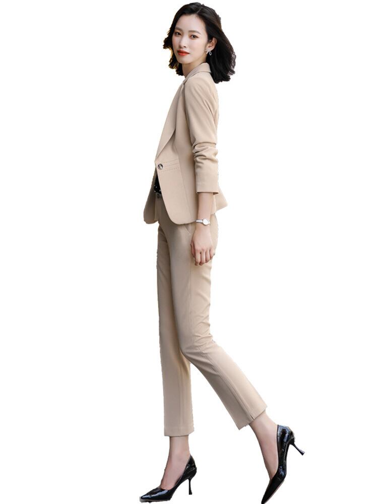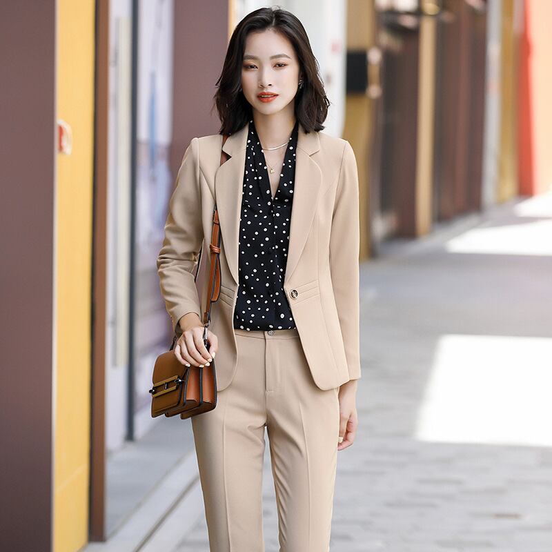 【新作】【送料無料】 Xiaoxiangfengファッションホワイトカラービジネススーツスーツ女性2020秋と冬の新しい長袖ウエスタンスタイルツーピーススーツ-アリババ ロング オータム 秋物 ウィンター 冬物 12b384929119162