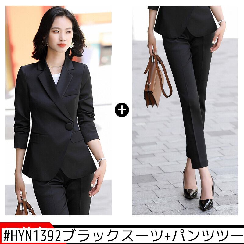 【新作】【送料無料】 模倣された酢酸スーツの女性の2020年秋冬の新しいプロの黒のファッションと有能なツーピースセットの年齢削減-アリババ ブラック オータム 秋物 ウィンター 冬物 12b371770157420